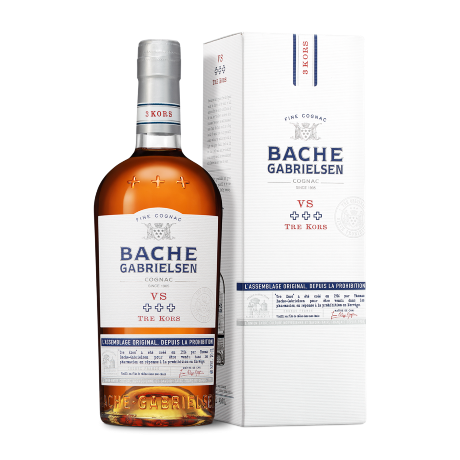 VS 3 Kors Fine коньяк нь Bache Gabrielsen-ийн eau-de-vie төрлийн холимог коньяк юм. Энэхүү коньякний 75% Fins Bois eaux-de-vie-с бүрдэх ба үлдсэн 25% нь Grande Champagne болон Petite Champagne-аас бүрддэг бөгөөд савлахад бэлэн болохоос өмнө дунджаар 4 жил боловсруулан дарсан байдаг. VS 3 Kors Fine нь 100 гаруй жилийн турш худалдаанд зарагдаж байгаа коньяк бөгөөд нэгэн цагт Норвегийн эмийн сангуудад ханиадтай өвчтөнүүдэд жороор олгодог эм болгон зарагддаг байжээ. Өнөөдөр энэ нь дэлхий даяар зарагдаж амт таашаалаар олны сонирхолд бүрэн нийцсэн юм.